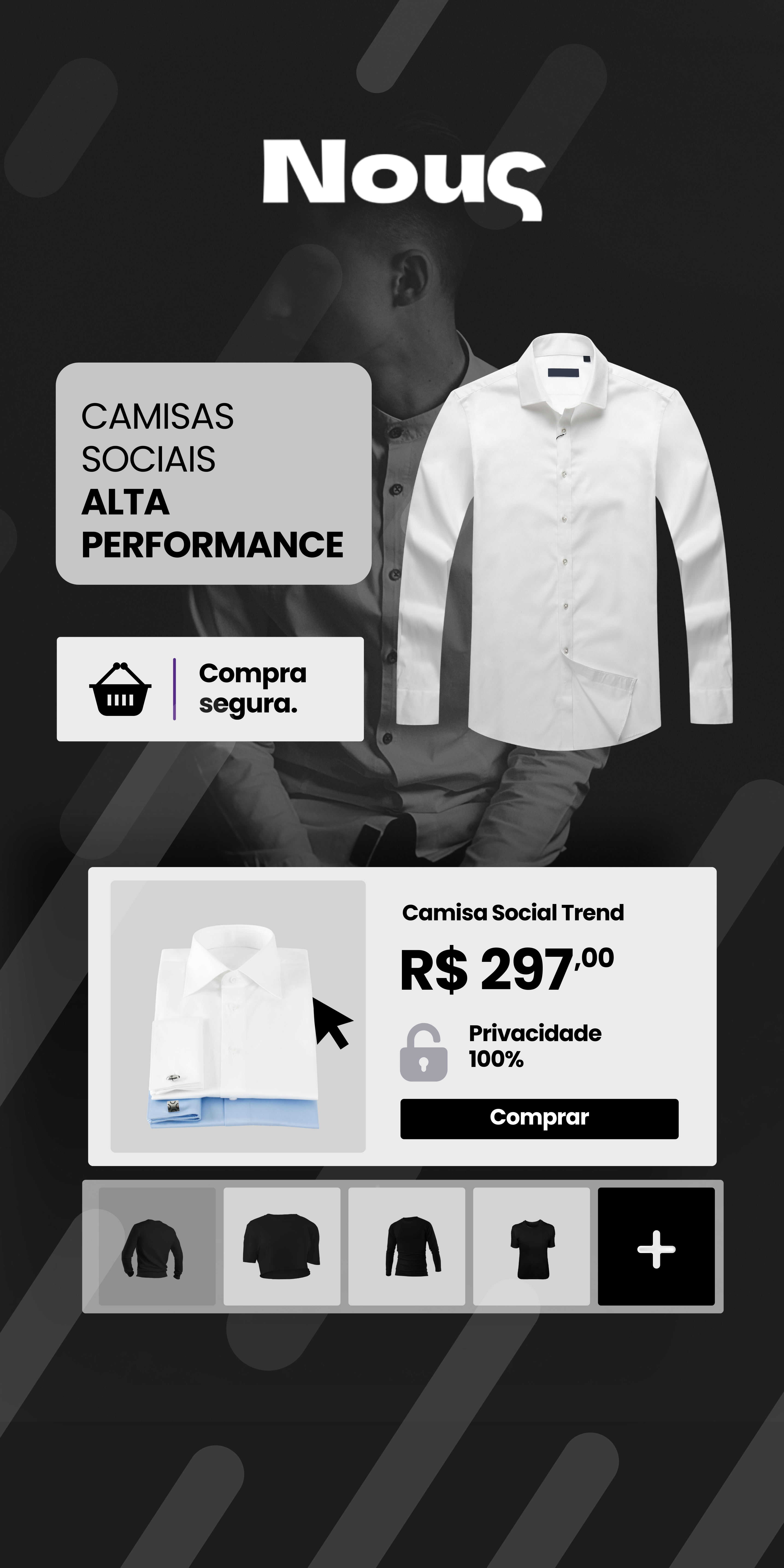 Um portfólio que vai do casual ao elegante, buscamos sempre oferecer produtos de alta qualidade, alinhados às tendências da moda masculina.
